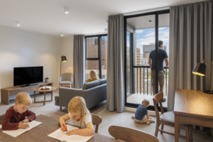 Our apartments are designed to help you feel at home, with all the essentials for a comfortable and independent stay. Spread out, log on, cook in, or simply relax after a busy day. Each apartment includes free Wi-Fi, Chromecast, a fully equipped kitchen, and laundry access, plus a 24-hour reception, gym access, and friendly support from our team.